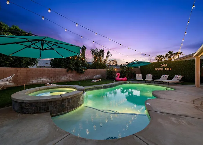 Los huéspedes pueden hacer uso de una cocina bien equipada, así como una zona de comedor en este establecimiento. También hay una cafetera/tetera, una nevera y un horno para preparar tu propia comida. Los huéspedes pueden cenar en el restaurante Neil's Lounge, situado a unos 1 km. Esta villa además se encuentra a 33 minutos en coche del aeropuerto Internacional de Palm Springs. Para relajarse tras un día ajetreado, la Casa Desert Muse With Heated Pool Spa Firepit Mini Golf And Games ofrece una piscina privada, además de un jacuzzi y una bañera de hidromasaje. Los huéspedes pueden disfrutar de diversas actividades en las instalaciones, como mini golf, billar y dardos.